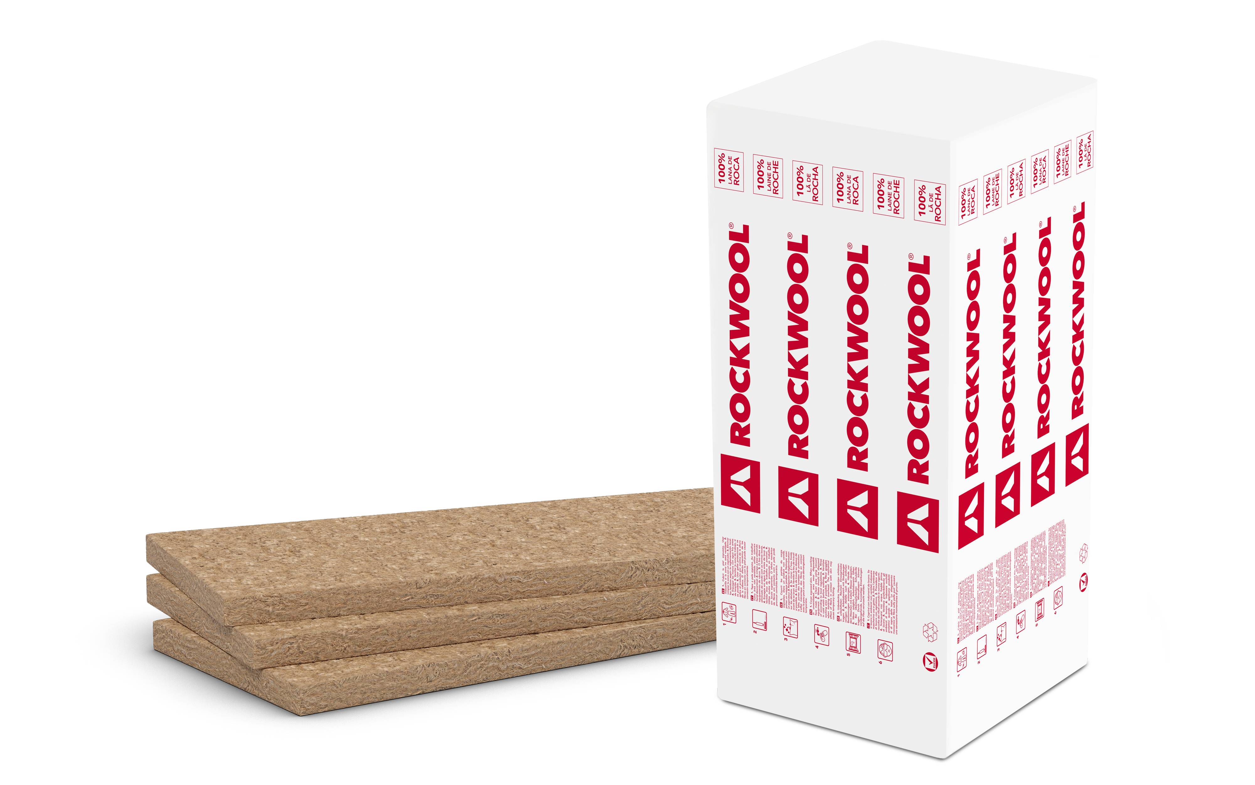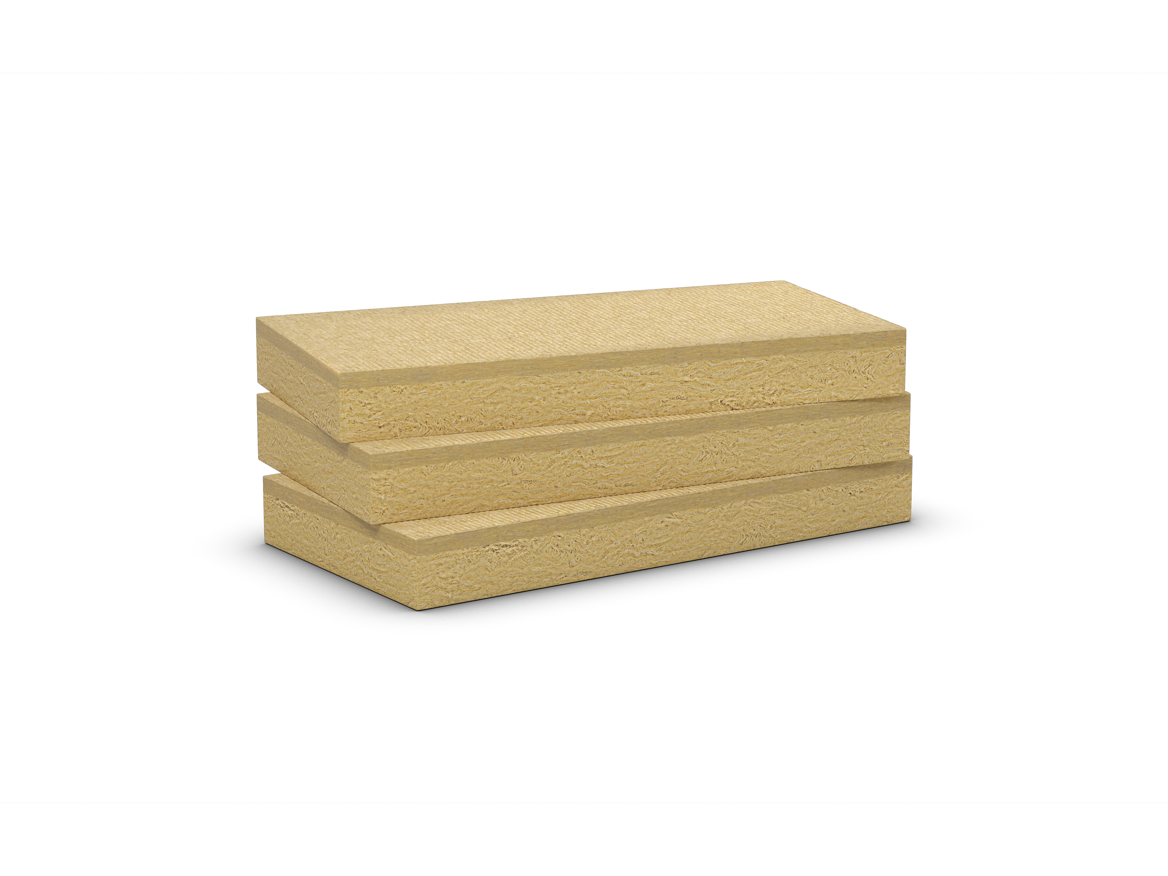 Panel rígido de lana de roca de doble densidad no revestido. La cara superior de mayor densidad, identificada con una marca, le aporta una optima resistencia a las pisadas