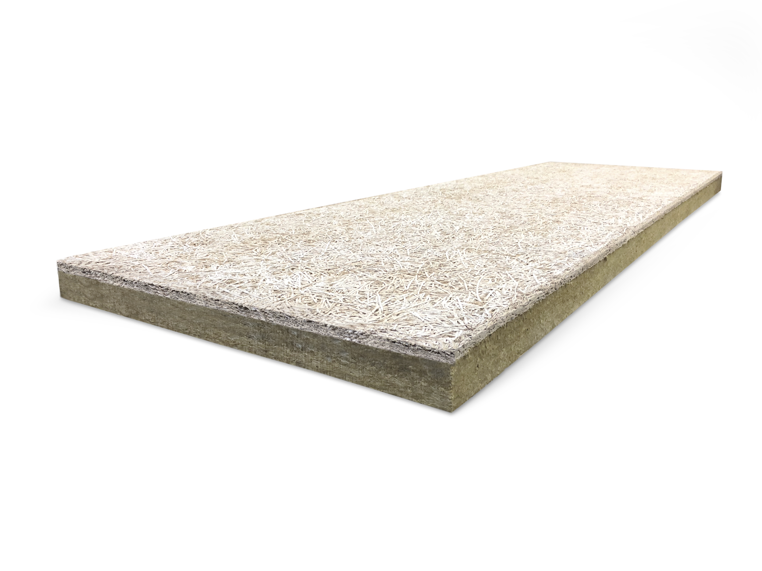 Panel compuesto por un aislamiento de lana de roca de doble densidad y un panel de lana de madera biselado en sus cuatro lados.