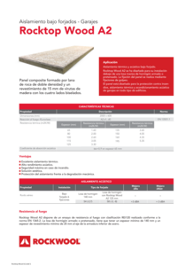 Rocktop Wood A2 está destinado principalmente a la protección contra incendios, el aislamiento térmico y acústico de forjados, especialmente indicada para su instalación bajo forjado cuando se busca un acabado estético y de alta calidad.
