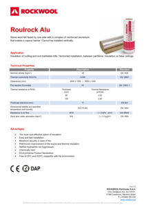 Fieltro de lana de roca revestido por una de sus caras con una lámina de aluminio, que actúa como barrera de vapor. Fieltro utilizado para el aislamiento térmico y acústico de buhardillas no habitables, así como para el aislamiento de falsos techos suspendidos. No apto para instalación en posición vertical.