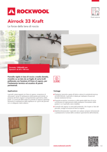 Pannello rigido in lana di roccia a media densità, rivestito su un lato da un foglio di carta kraft politenata con funzione di freno al vapore, per l’isolamento termico ed acustico di pareti perimetrali.